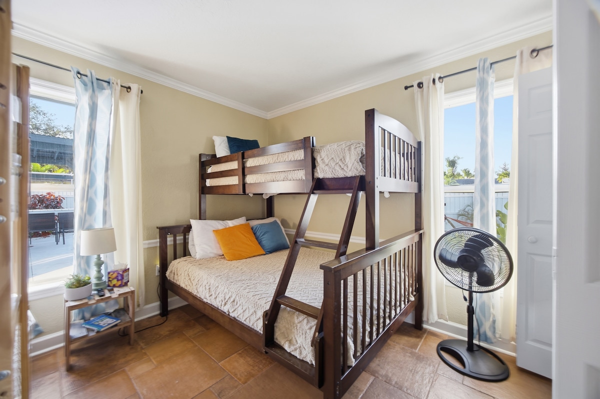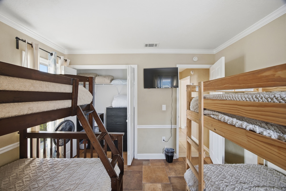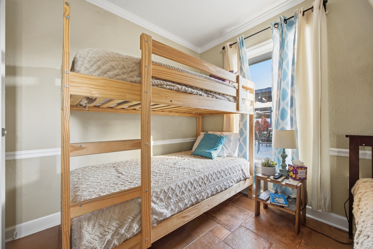 The second guest bedroom includes a 2 twin bunk beds and a twin over full bunk bed, ideal for kids or groups who want to stay together comfortably.