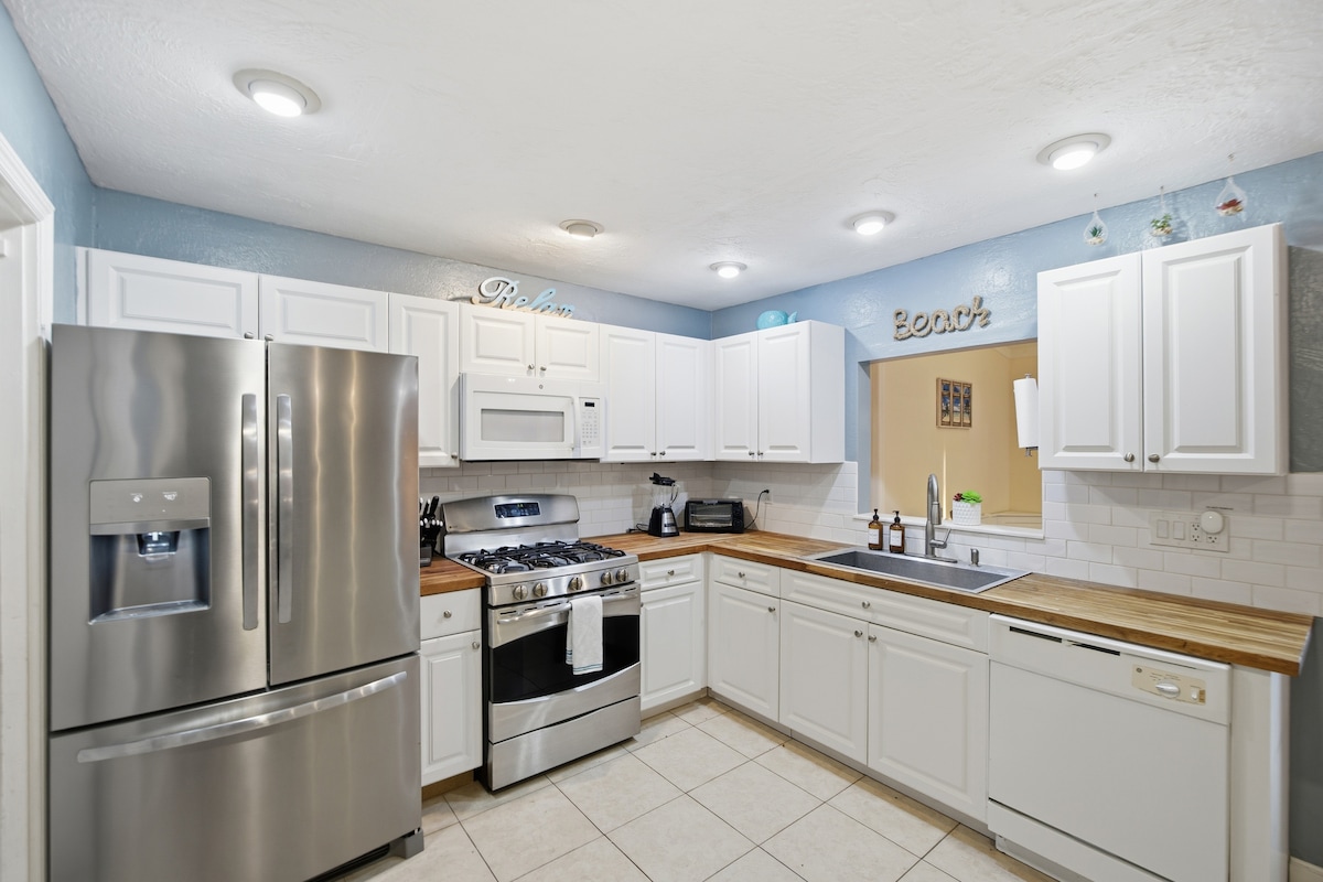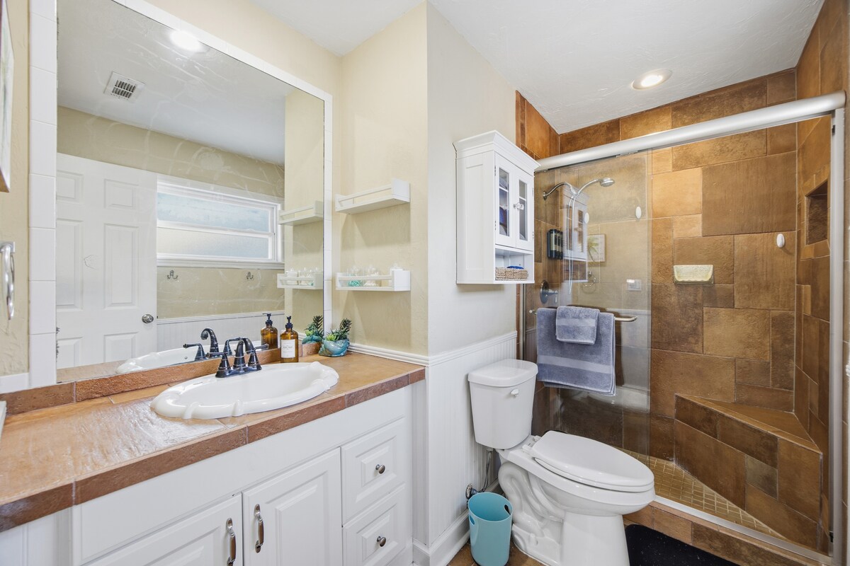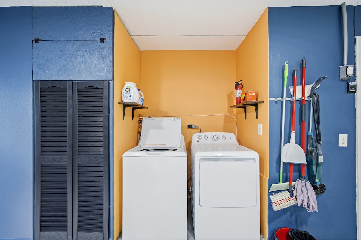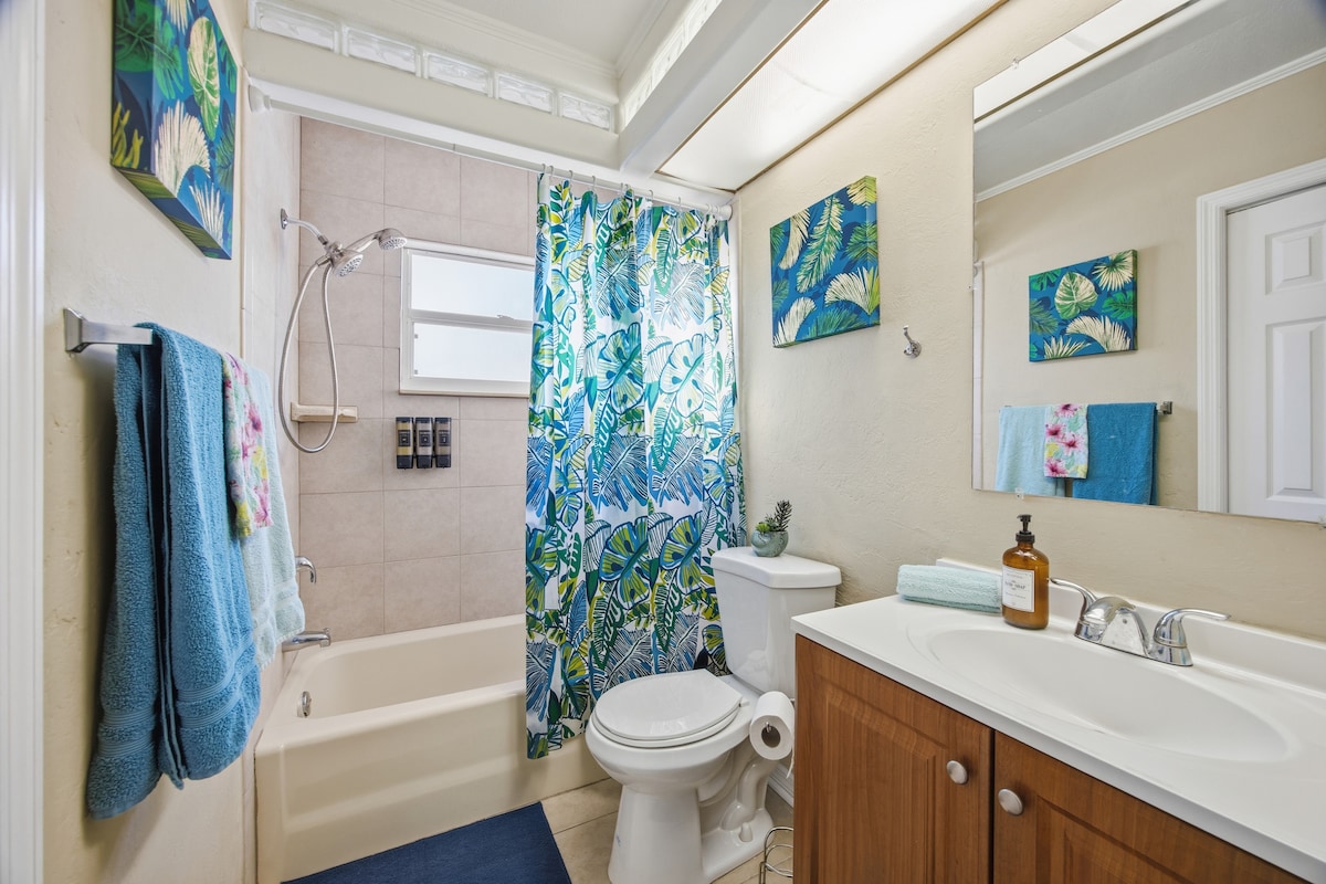 Two full bathrooms are available for guest use—one with a shower/tub combo and the other with a walk-in shower, both stocked with fresh towels and essentials to make your stay seamless.